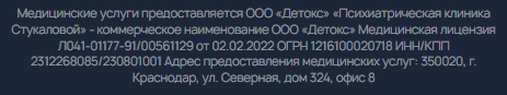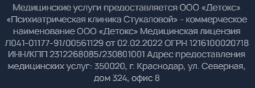 Есть услуга детоксикации, снятия абстинентного синдрома, вывода из запоя в стационаре и домашних условиях. Также помогаем наркозависимым при передозировке.