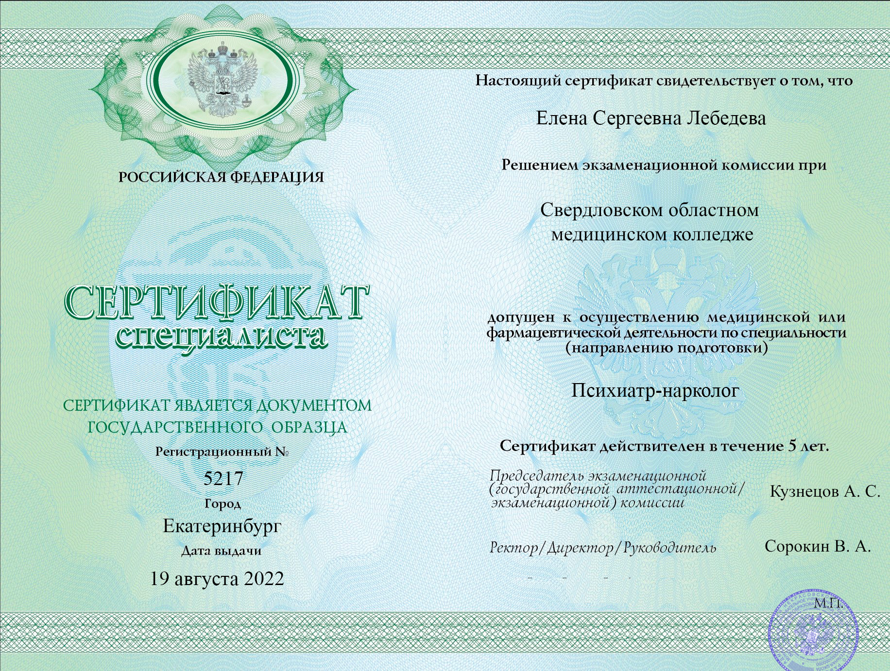 Елена Сергеевна Лебедева врач нарколог клиники доктора Стукаловой в Горячем Ключе
